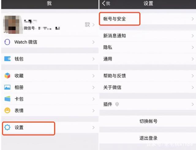 1、打开微信,点击“我的”,找到“设置”下的“账号与安全”。