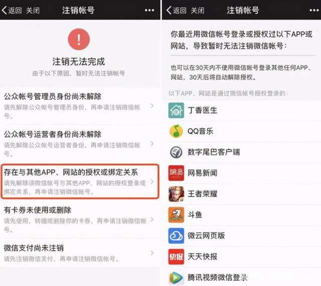 3、在页面内找到“申请注销”,就会出现微信曾接绑定过的应用。