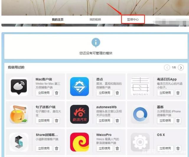 1、登录微博,点击【管理中心】-【我的应用】,即可查看通过微博授权登录的应用和平台。