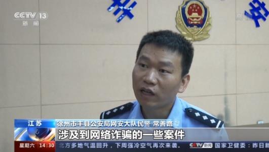 徐州市丰县公安局网安大队民警 常善路: 涉及到网络诈骗的一些案件,包括有冒充好友的、冒充企业老板的、办理什么信用卡的,退税的,理财类的诈骗,冒充公检法司的购物诈骗,还有刷单类的诈骗交友的,诱赌的诈骗总的涉及金额有总的统计下来超过5000万元。